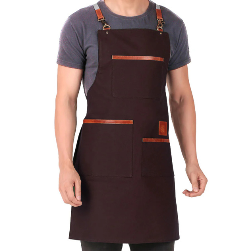 Chef Leather Aprons or Chef Aprons for Men are best — they’re heat-resistant and stylish.